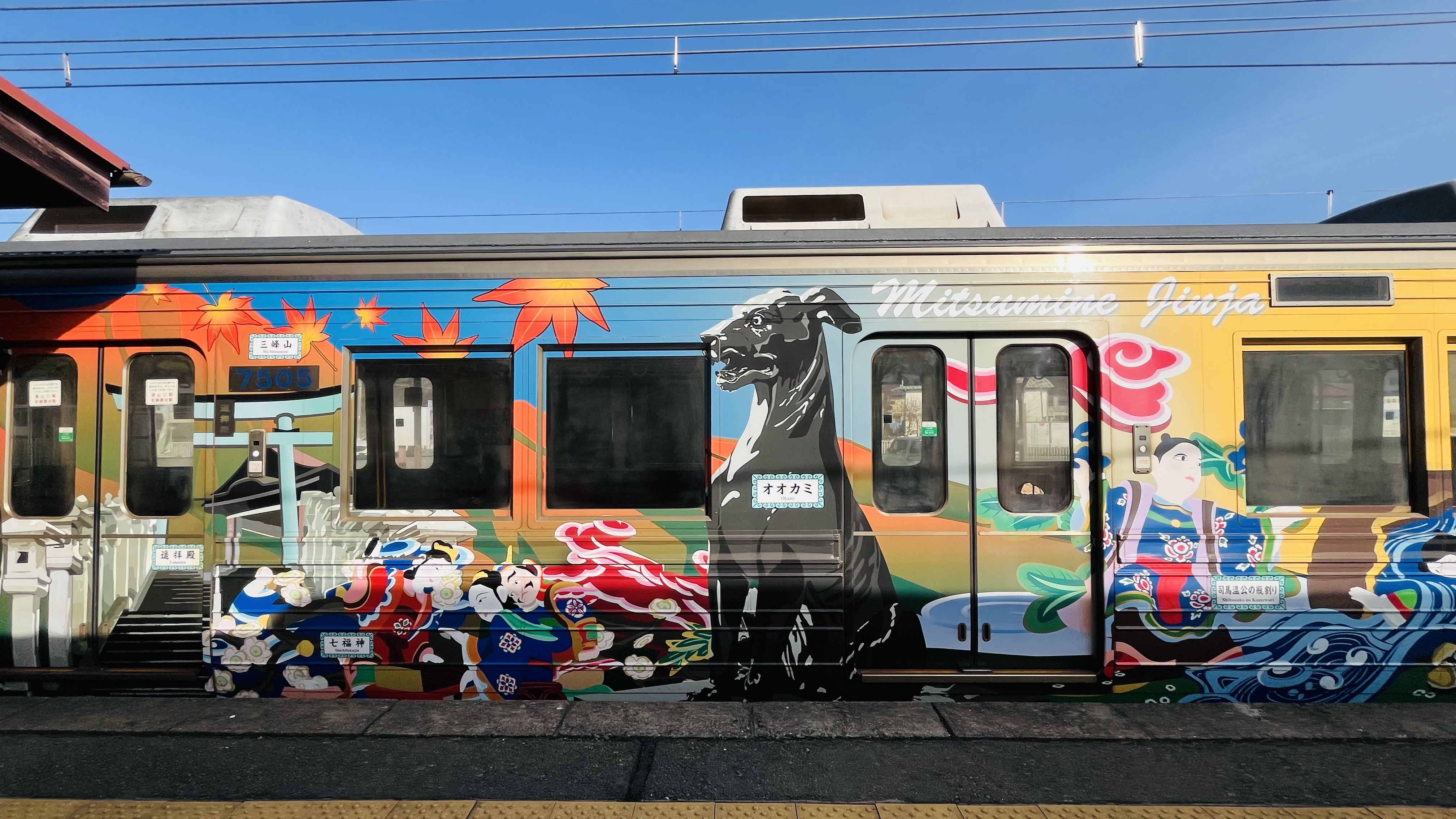 最後は秩父鉄道に乗り長瀞駅で下車。一の鳥居から長い参道を経て本殿まで歩くこと15分、神武天皇を祀る「宝登山神社」へ。